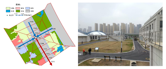 下墊面產(chǎn)流示意圖(左)和黃家湖污水廠應(yīng)用效果圖(右)