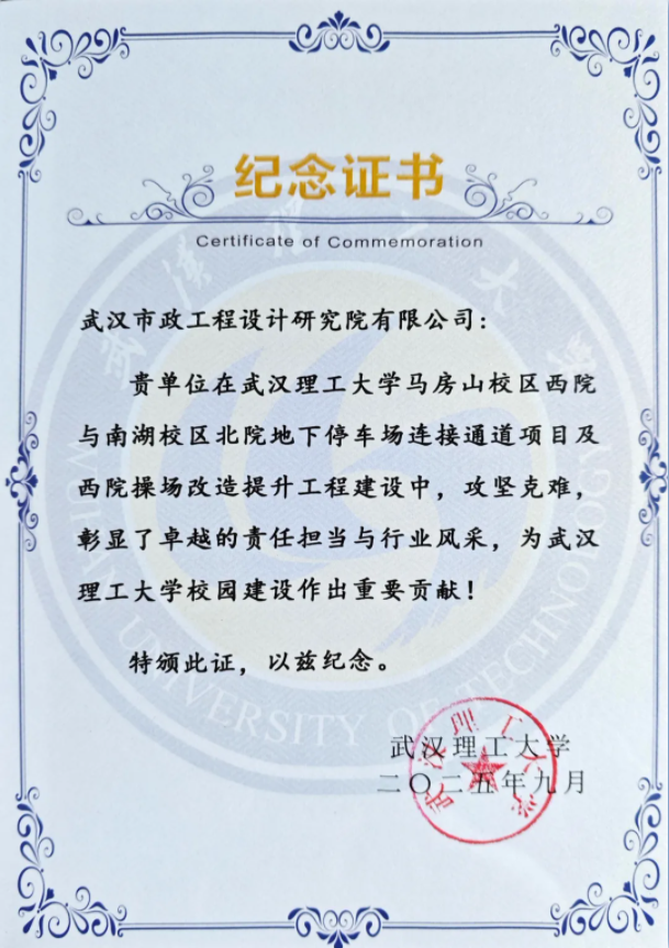 2025年9月6日上午,由武漢市政院設(shè)計(jì)的武漢理工大學(xué)馬房山校區(qū)西院與南湖校區(qū)北院地下停車(chē)場(chǎng)連接通道項(xiàng)目(以下簡(jiǎn)稱(chēng)“武漢理工大學(xué)地下通道”)通車(chē)儀式隆重舉行。洪山區(qū)區(qū)委區(qū)政府主要領(lǐng)導(dǎo)、武漢理工大學(xué)領(lǐng)導(dǎo)及各參建單位代表共同出席,見(jiàn)證這一重要時(shí)刻。儀式上,洪山區(qū)區(qū)委主要領(lǐng)導(dǎo)頒發(fā)“紀(jì)念證書(shū)”,表彰武漢市政院等參建單位在項(xiàng)目設(shè)計(jì)與實(shí)施過(guò)程中作出的重要貢獻(xiàn)。